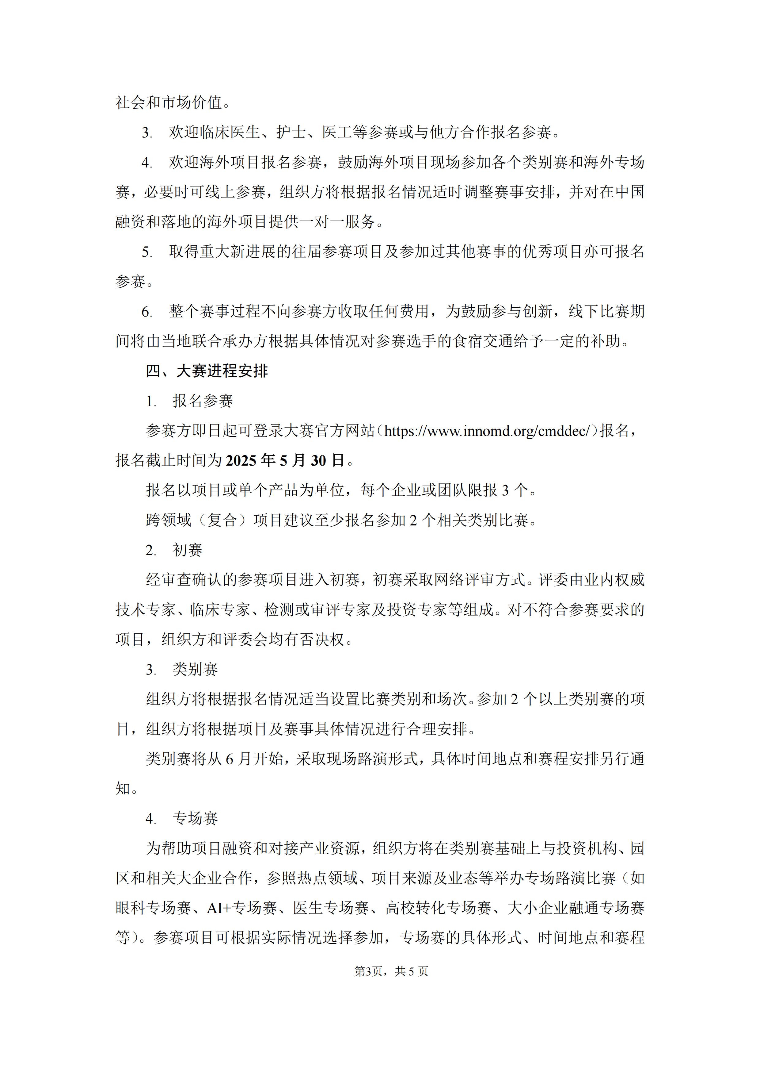 参赛方即日起可登录大赛官方网站(医疗器械创新网网://zzyingteer.com/cmddec/)报名,报名截止时间为2025年5月30日。